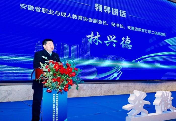 安徽省职业与成人教育协会副会长、秘书长、安徽省教育厅原二级巡视员林兴德在讲话中指出:安徽智能应用职教集团要始终紧扣“服务区域经济、深化产教融合、培养高素质技术技能人才”的核心定位,秉承平等合作、资源共享、优势互补、互惠共赢,坚持以服务区域经济的宗旨,深化校企合作、产教融合,要搭建好智能应用合作平台,推进产教深度融合新发展,完善好职教集团运行机制,形成多元协同育人新格局,凝聚好集团优质资源要素,担当智能应用行业发展新使命。他强调,当前,职业教育正处于“提质培优、增值赋能”的关键期,也是服务新质生产力发展的窗口期,推进职普融通、产教融合、科教融汇,对于安徽智能应用职教集团而言,这既是使命担当,更是发展机遇。他期望,安徽智能应用职教集团要锚定“产教深度融合”,打造协同育人的“新标杆”;强化“平台赋能增效”,构建资源聚合的“强磁场”;坚守“育人初心使命”,培育服务发展的“主力军”。