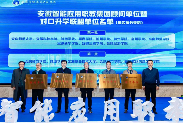 会上,安徽省职业与成人教育协会原会长李兴旺、安徽智能应用职教集团副秘书长、对口升学专委会主任张军军为合肥师范学院等5所本科院校作为第二批顾问单位暨联盟成员单位进行了授牌。