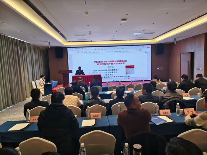 专家报告环节,葛维威以《学好用好〈中华民族共同体概论〉推进学校铸牢教育走深走实》为题,解读了铸牢中华民族共同体意识教育的重要性。